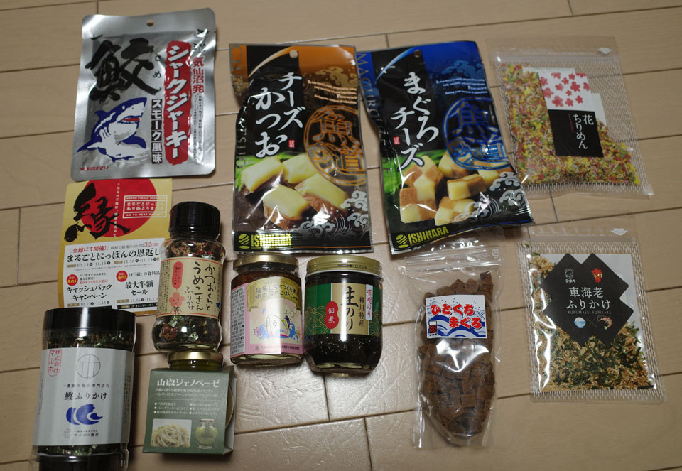 色々買ってきました。全国のふりかけが美味しい。前にも買って美味しかったものでは、生海苔の佃煮、山椒のジェノベーゼ、しらすの佃煮と明太子のご飯ジュレがおすすめ。もう一回くらい買いに行けるといいなあ。