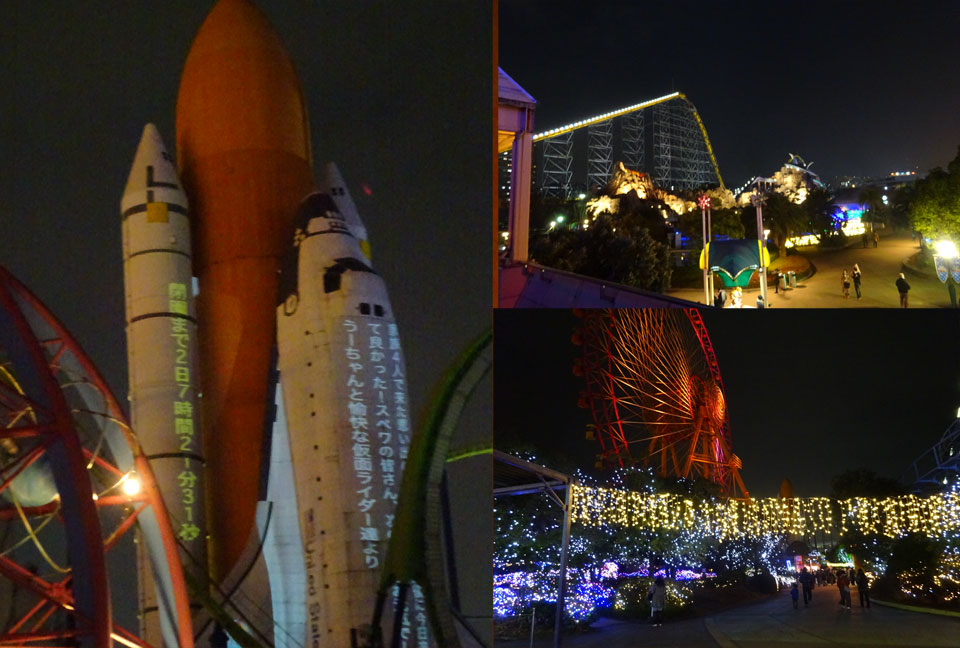 閉園までの秒ごとのカウントダウンとお客さんからのメッセージが次々とスペースシャトルに映し出されてました。