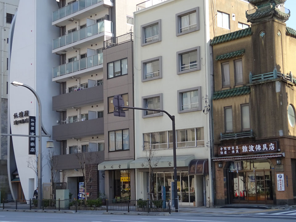 合羽橋はなぜか仏壇屋さんも多い。すごく古いとこのすぐ近くにやたらモダンなのも。