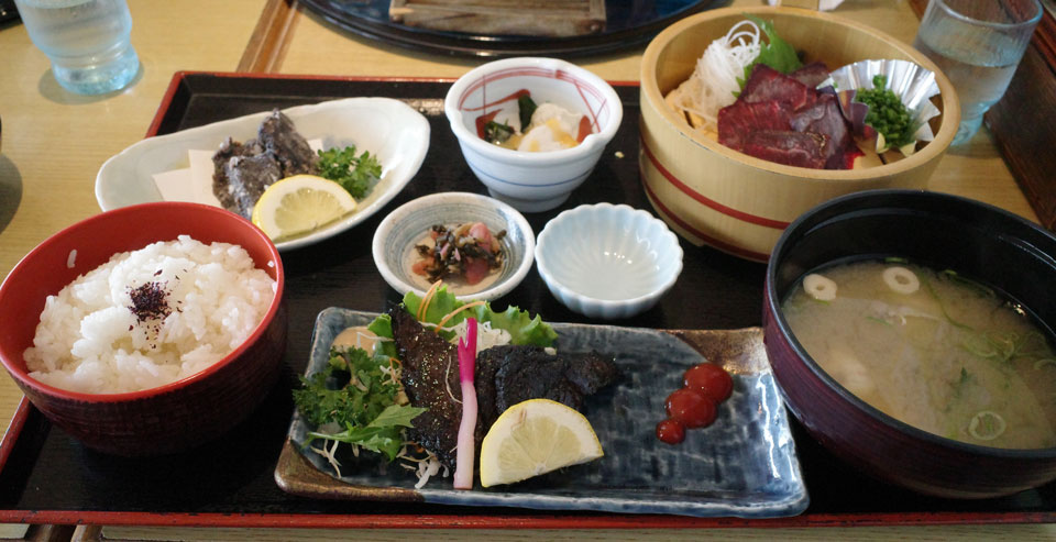 家族がふぐ雑炊などにしたので、自分は鯨定食にしました。