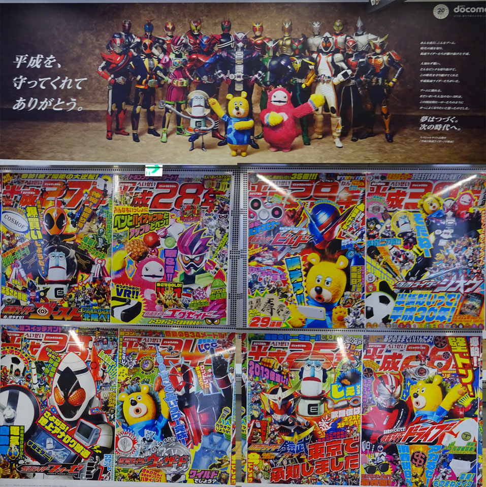 ちょっと前に渋谷の地下に掲示してあった平成仮面ライダーたちとドコモのポスター。