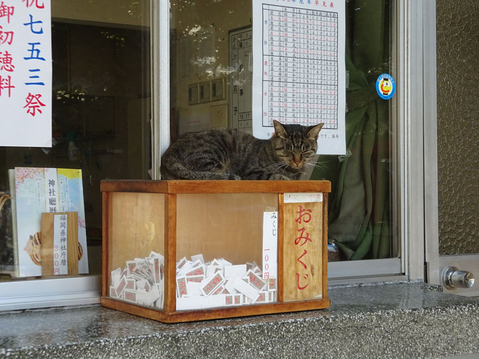 社務所のおみくじ箱の上には猫さんが鎮座されておりました。