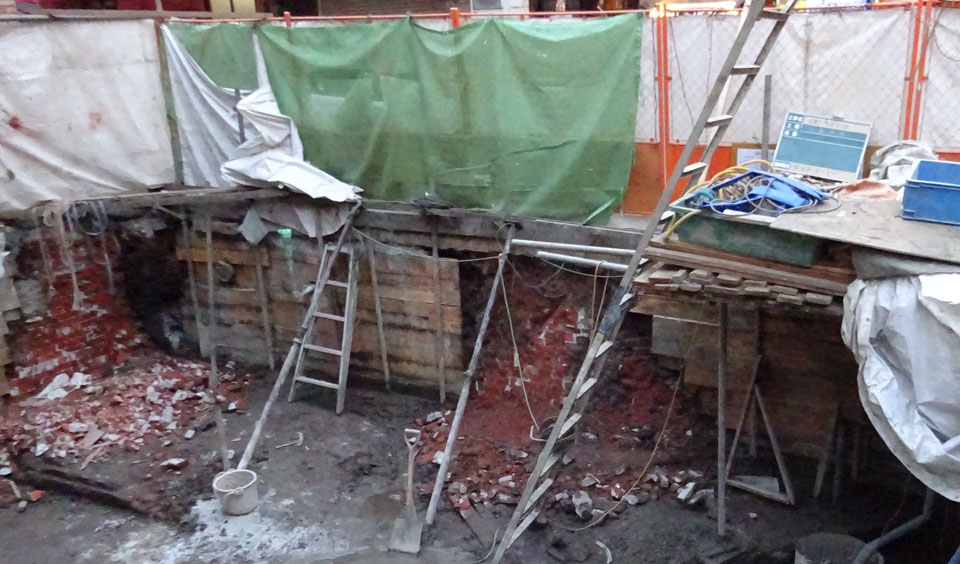 工事中に発見されたと話題の浅草凌雲閣いわゆる十二階のあとというか基礎の部分。