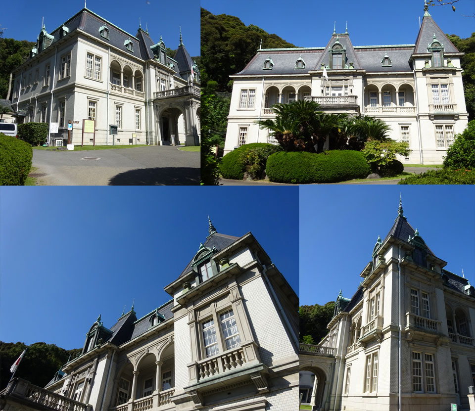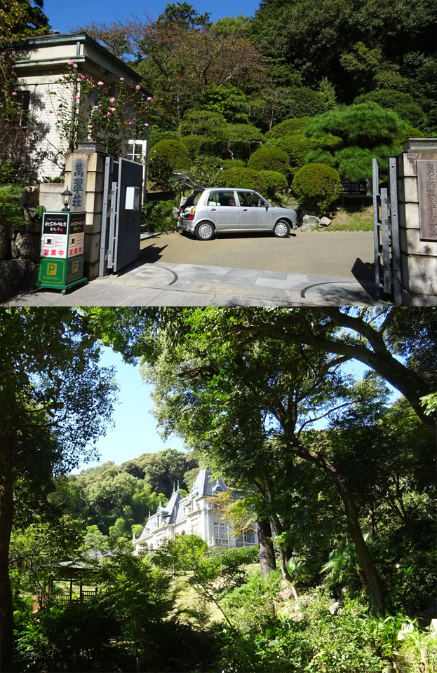 さて、坂の上の雲ミュージアムの建物を横目に見つつその入口への坂を登ると同時に萬翠荘の表示が。そこから坂を折れ曲がると見えてきました、萬翠荘。ほんとに日本か此処、という眺め。