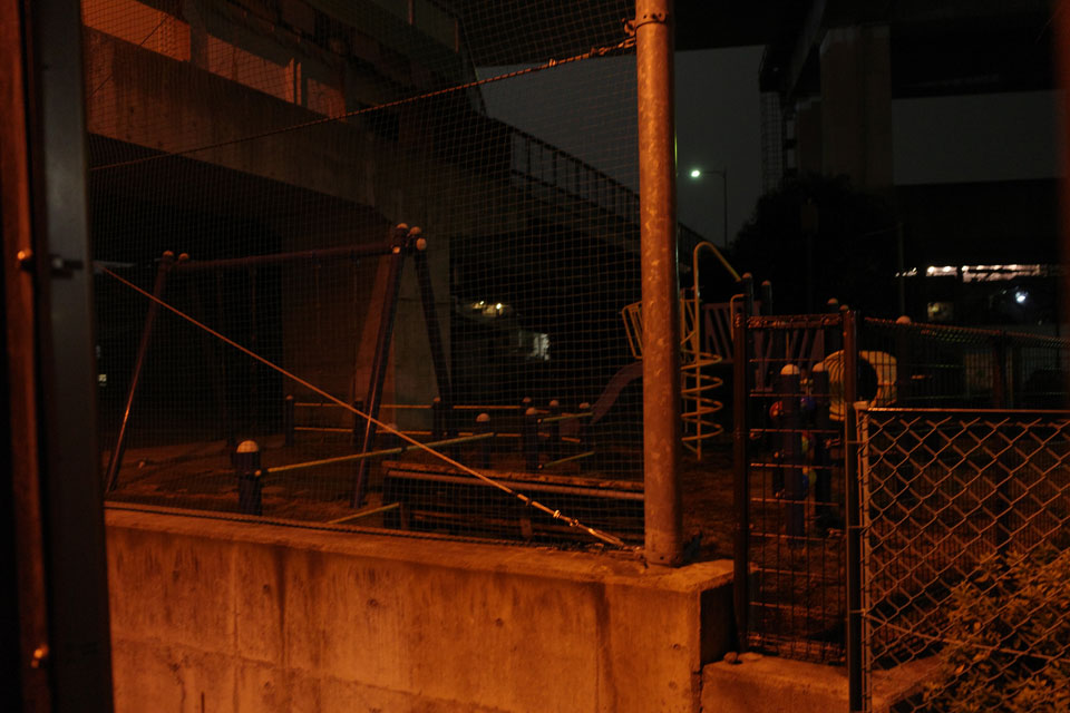その階段に囲まれるようにある公園が夜はちょっと不安感多いですね。