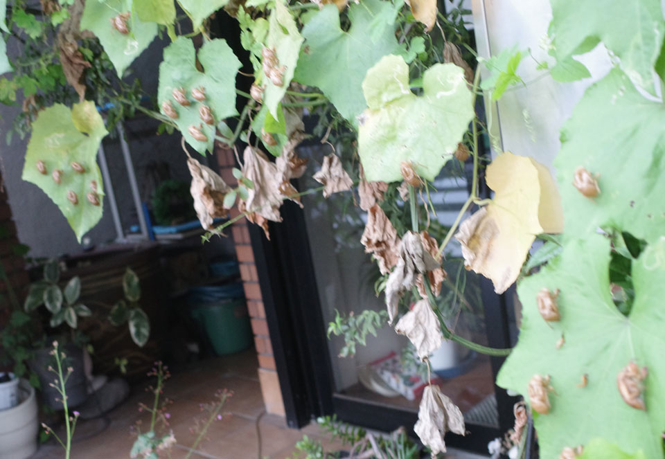 まだまだ暑いですね。どこが10月だ。と思いながらてくてく散歩してたある日、西巣鴨の商店街に面した、でも普通の住宅の玄関がけっこうな緑に覆われてるのに気づき、それだけでなくその緑に