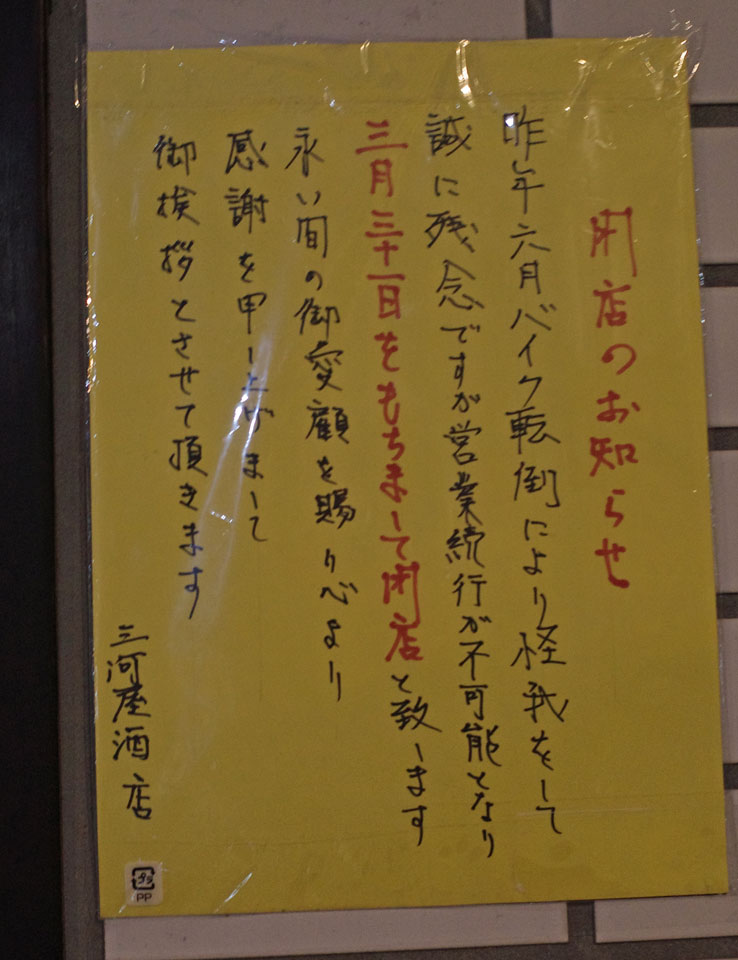 閉店 三河屋酒店