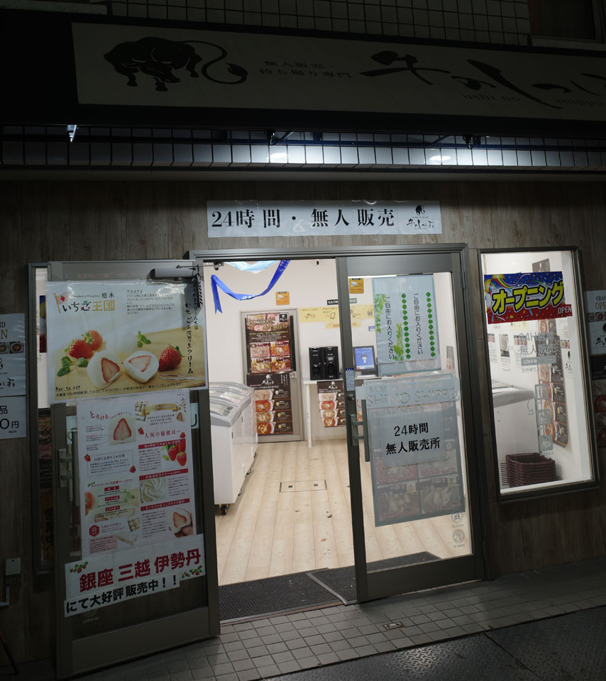 ここでもまた無人の自販機の店が増えてきてるんですねえ。