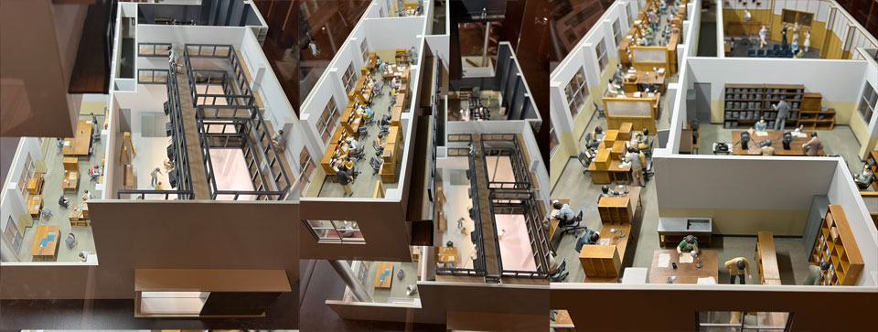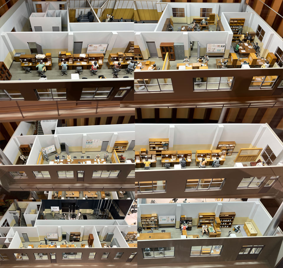 これが第一期の建物で自分が知ってるのは建て増しに建て増しを重ねてコの字と四角の中間くらいまでなってからなんですが、その頃に会議室だった部屋が試写室とは聞いてたけど隣が編集だったのかあとか、どうやら企画部室らしところはほぼ変わってないみたいとか、昔の撮影室はあとでミュージアムになってたなあとか。