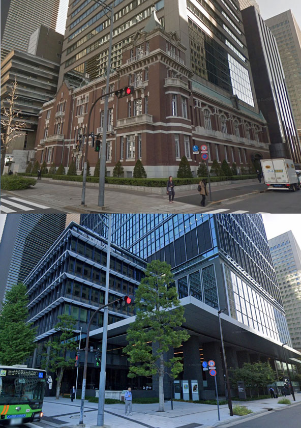 東京駅に行くときよく都営三田線を利用してて、大手町降りてすぐの銀行協会というビルがあり、大正15年着工のモダンルネサンス式の素敵な洋館。とても好きで8ミリアニメの頃に舞台のモデルとして使うくらい(このブログ名にもなってる『錆びた館』)だったのですが、昭和が平成に変わる頃に表側だけ残して途中から高層ビルという変なことに。ここ数年はJRで東京駅にいってたものでしばらく見てなかったんですが、先日三田線を降りてみると
