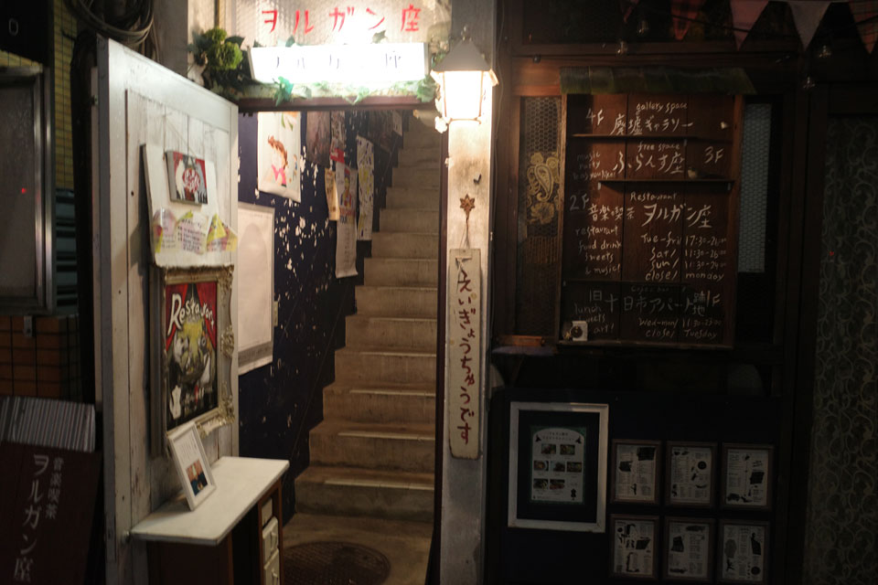 この店。ヲルガン座。音楽喫茶でギャラリーもあるらしい。京都のライト商会とか大阪のギャラリーカフェ冥とか東京ならザロフとか百日紅に通じる匂い。こういうとこが広島にもあったとは。