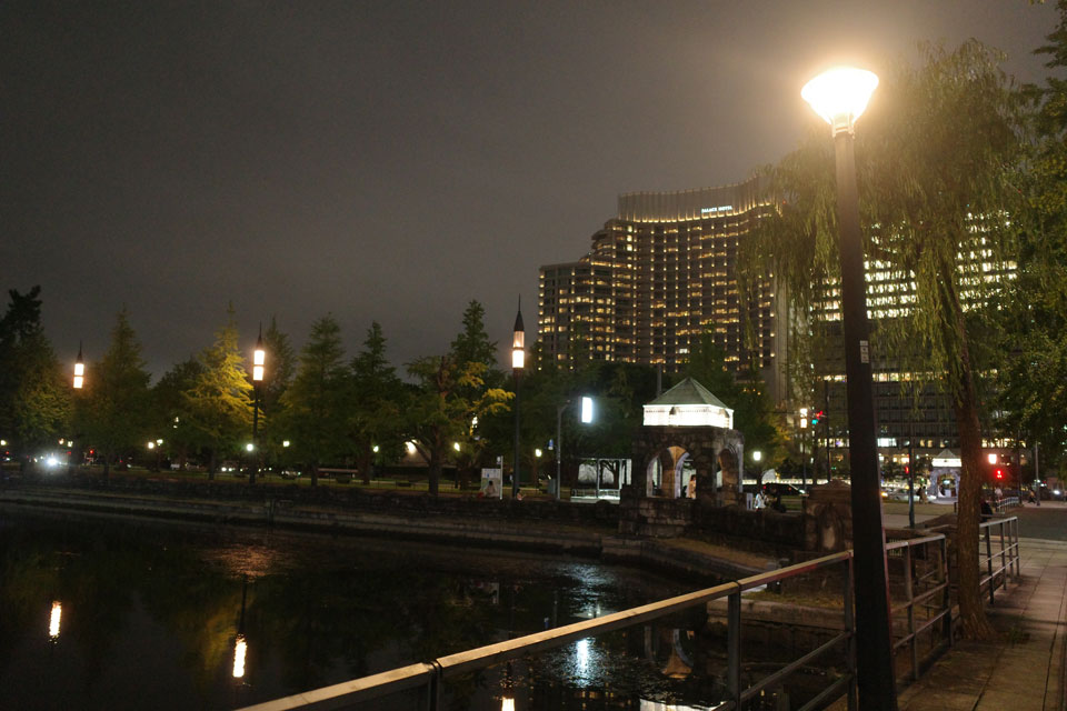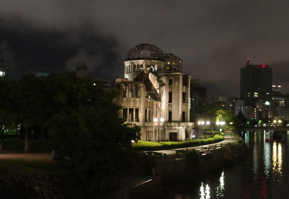 夜の原爆ドームはこんなライトアップしてるんですよ。