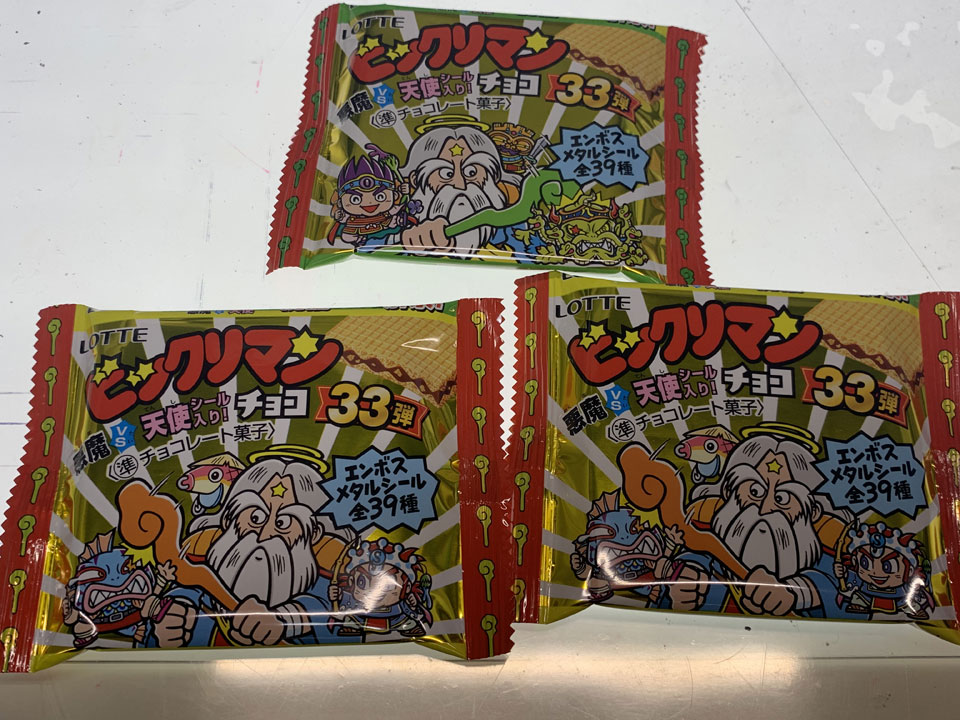 プリキュアですっかりお世話になってるアニメーターの青山充さんが、ビックリマンチョコを配り歩いてくれてたのです。アニメ版のキャラクターデザイナー自ら!なんでもロッテからビックリマンのシリーズディレクターである貝沢さんのところにおくってこられたものだとか。もう30年にもなるんですよねえ。ひゃー早いもんだ。