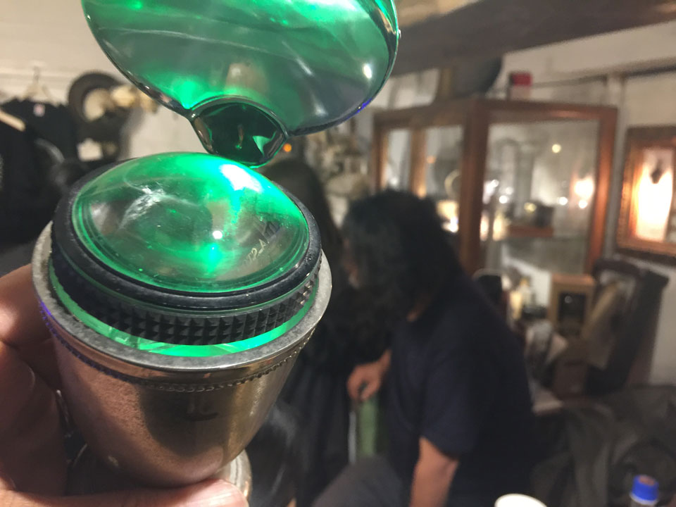 二日前の記事でも書いたマンタムさん、骨董商でありながら造形作家でもあり、ワークショップも時々されてます。前にも二度受けて三度目なので、今回はすこし材料持っていきました。ホビーショーで買ったLEDのキットと、実家にあったルーペ。それをどうするかは行ってからその場にあるもの見繕って、結果がこんなものに。