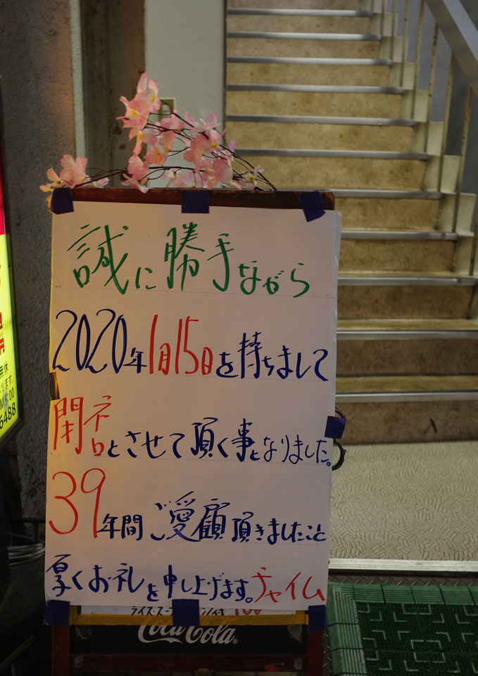 同じ階の中華屋さんも去年閉店してはいたけど。
