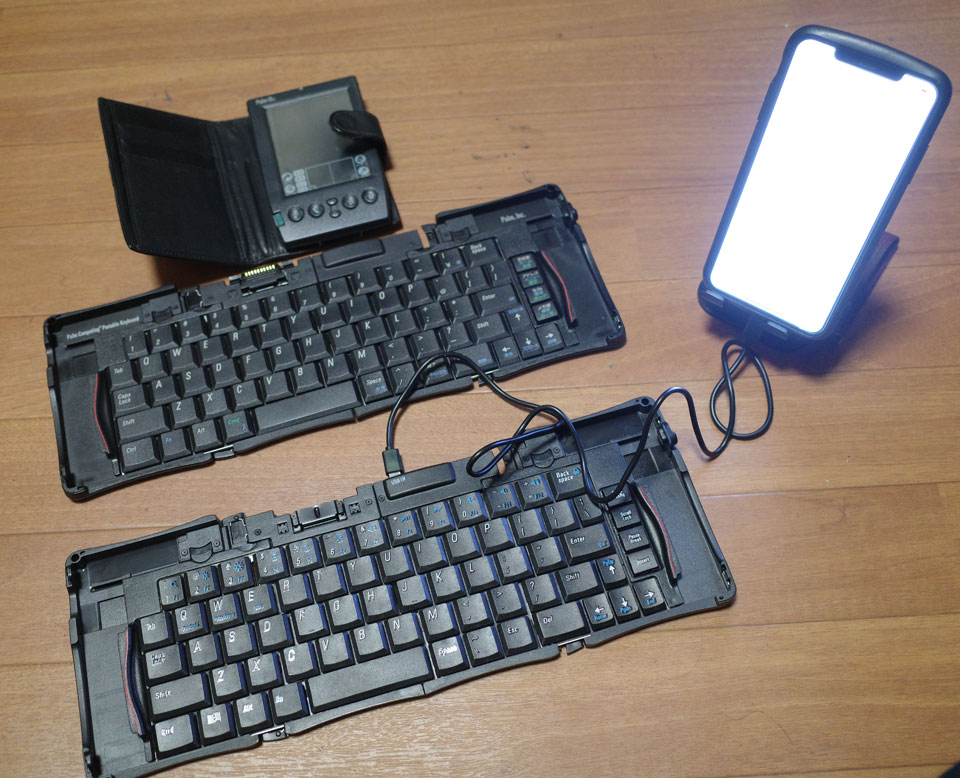 二年ちょっと前に買った、iPhone、iPad用4つ折りキーボードのオリジナルのPalm用のもの。
