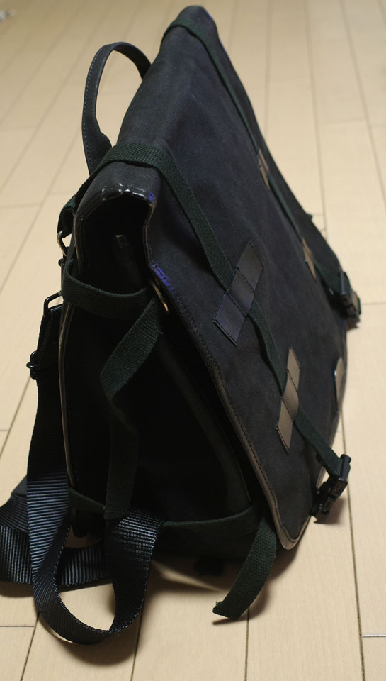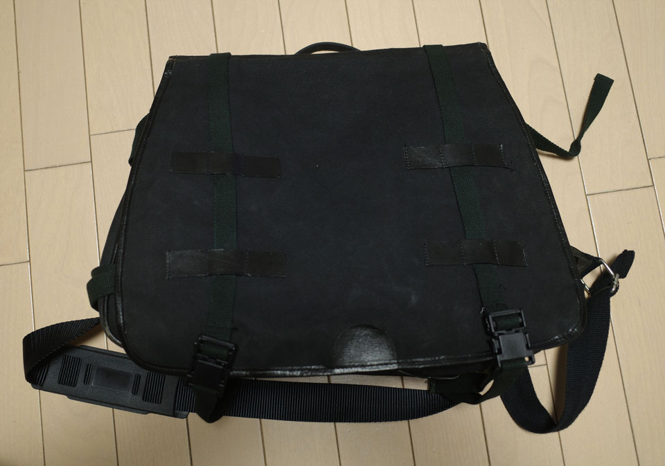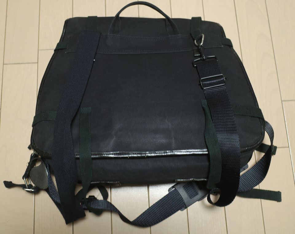 ハロルズギアという、主にバイク乗りの人用の服をいろいろ作ってたところで、自分はバイクは全く乗らないのですが、すごく丈夫で重宝してたんですよ。もとが革屋さんかららしく、革製品がメインの中に帆布の製品もいくつかあり、これもその一つ。人用の鞄でなくサドルバッグというんですか、バイクの後方左右につけるやつ。そのかたっぽだけ残ってたから安売りしてたんだっけかな。とにかく買ったのがもう20年以上前なのではっきり覚えてないんですが。