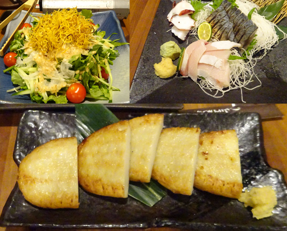 刺し身にサラダ、さつま揚げが美味しい。