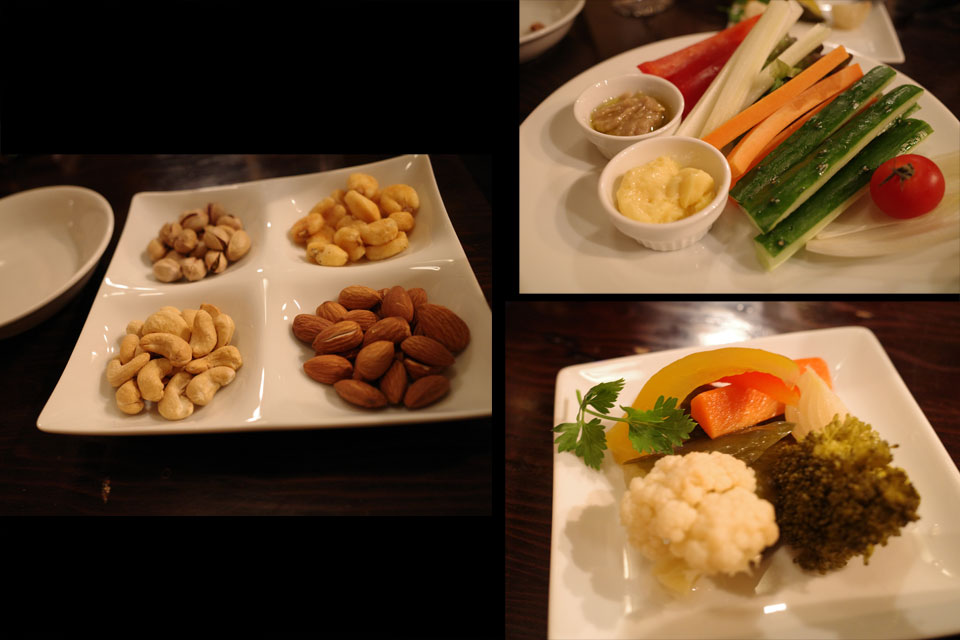 パーティの方で結構食べて腹はくちてたので、野菜スティック、ピクルス、ミックスナッツで。
