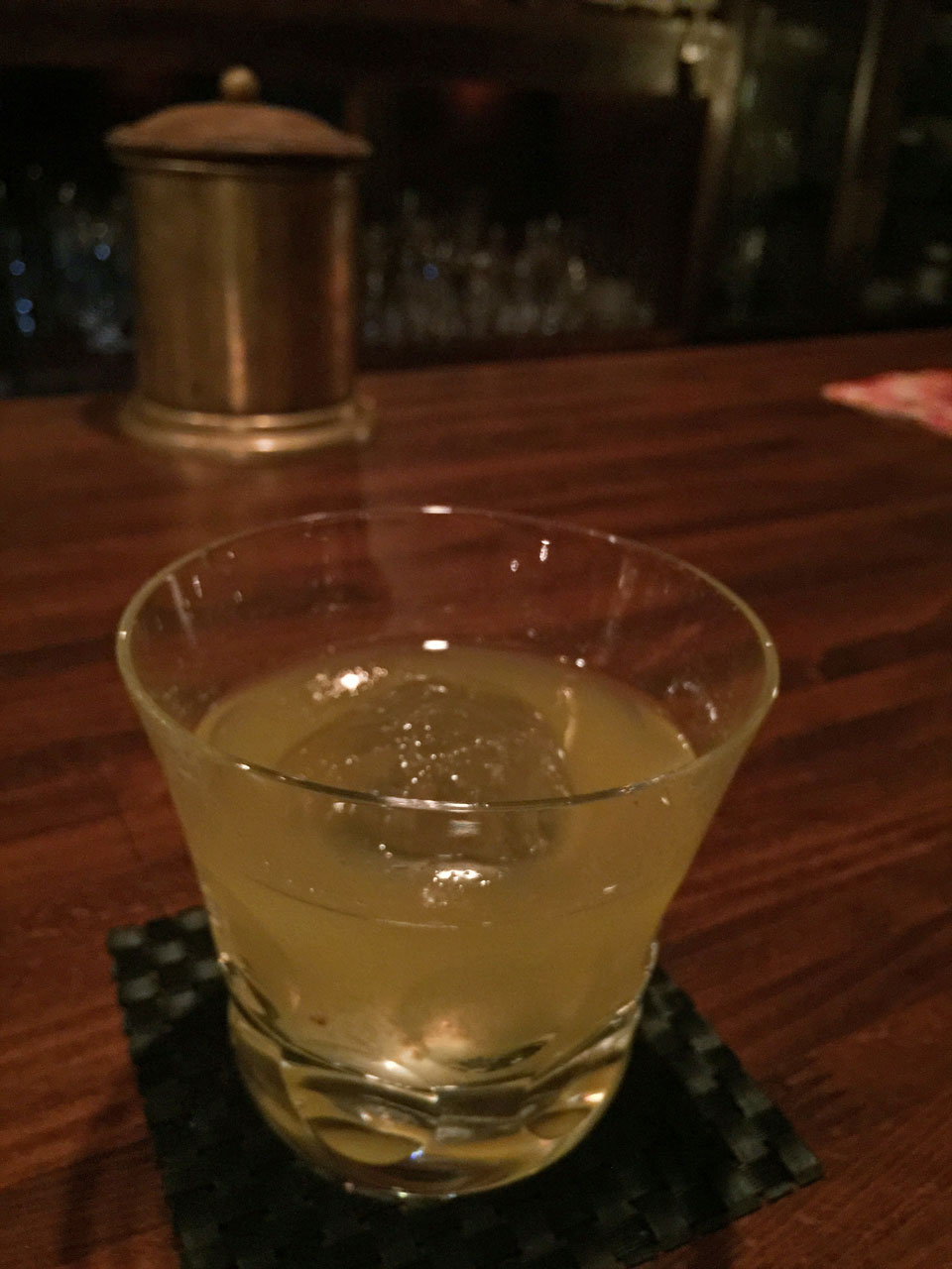 とはいえアーモンドの質感というか粉っぽさはかけらもなく口に入れた瞬間はパインの香りと甘さが広がり、そのあとで口の奥の方からローストアーモンドの香りが静かに追ってくるという、不思議な味わい。名前あるカクテルなのかな、聞いとけばよかった。