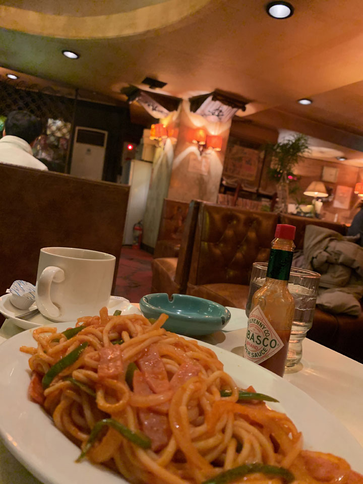 ケーキ類もあると思うのですが、ナポリタンを頼みましょう。