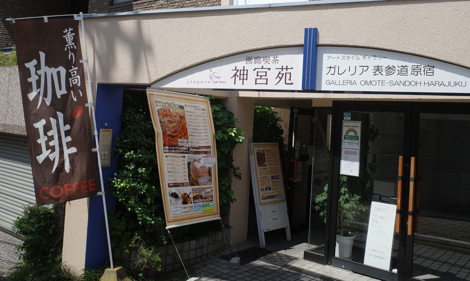 都心部での仕事で空き時間ができたので、気になってた表参道の雑貨店に行ってみるもなんと定休日。仕方なく原宿駅方面へ歩いてたら、住宅街の中に珈琲の幟、見ればギャラリーが。