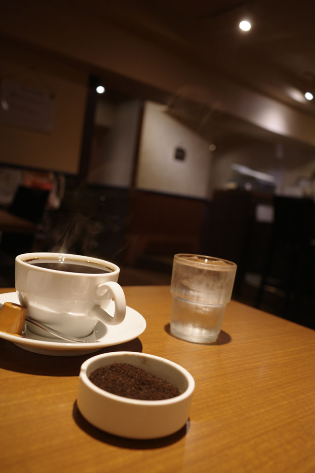 面積の割に席数少なめとゆったりした造りで、灰皿に珈琲の出し殻は懐かしい感じ。