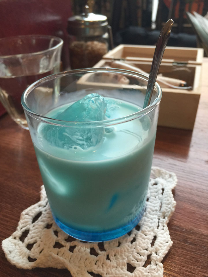 混ぜるとこんな色に。あまり見かけない青色。