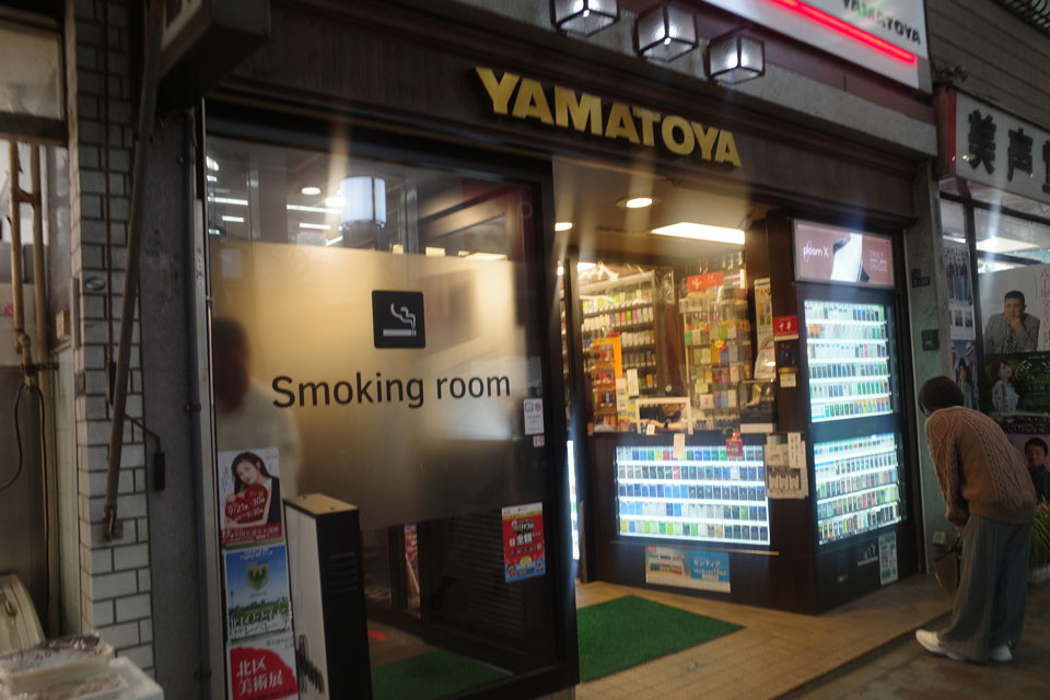 商店街のタバコ専門店に喫煙ルームが設けられてます。