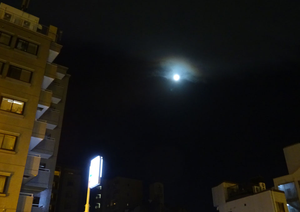 終演後はきれいな満月に彩雲がかかってたり、てのを見ながら