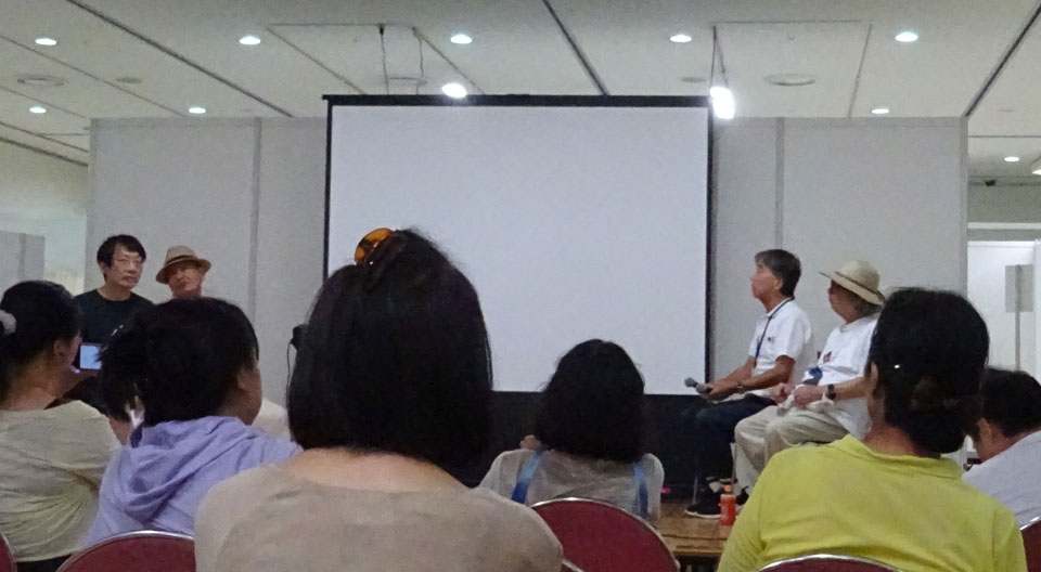 大中小あるホール内はどこも撮影不可なんですが、一階エディケーションマーケットで行われたトークイベントは撮影可。なみきたかしさん司会で南正時さん撮影の写真を見ながらクリヨウジさん古川タクさんが広島以前からのアニメーション界のいろんなことを語る会。