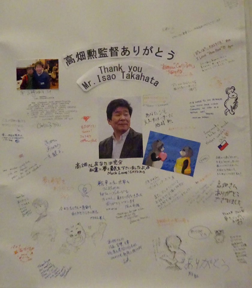 会場出入り口あたりの縦カンには高畑勲さんへの寄せ書きが。