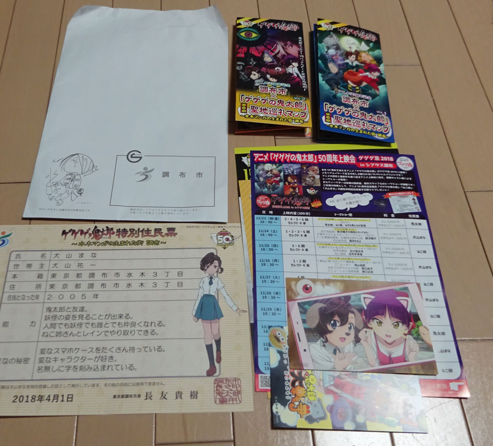 観客には鬼太郎、ねこ娘、まなの三種ある特別住民票とか聖地巡礼マップとかいろいろいただけます。