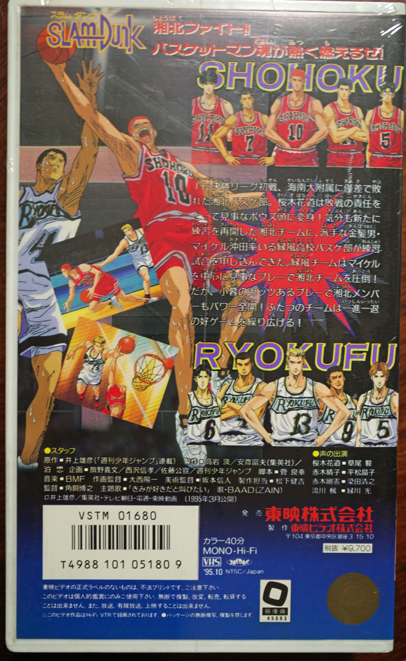 もともとスポーツものでもサッカーの『蒼き伝説シュート!』のTVシリーズにいた自分をこっちもやれ、と入れてくれたのは『まじかるタルるートくん』などでお世話になった旗野義文プロデューサー。それまであまり例のない二作品掛け持ちというのを始める切っ掛けになって、今に至るわけです。当時、共通する役者さんが複数いたこともあってアフレコは同じ曜日。午前『シュート』午後『SLAM DUNK』だったかなあ。掛け持ちといえども収録日などはずれた話数を担当してたのが、一度だけ同じ日に収録ということがありました。現在のように編集時線画だけという状態のようなことがない頃でどちらもちゃんとオールカラーで収録した、ということは前日は二本編集してたわけで。その前数日は二本分の撮出ししてたんだよなあ。どうやってたんだろ。