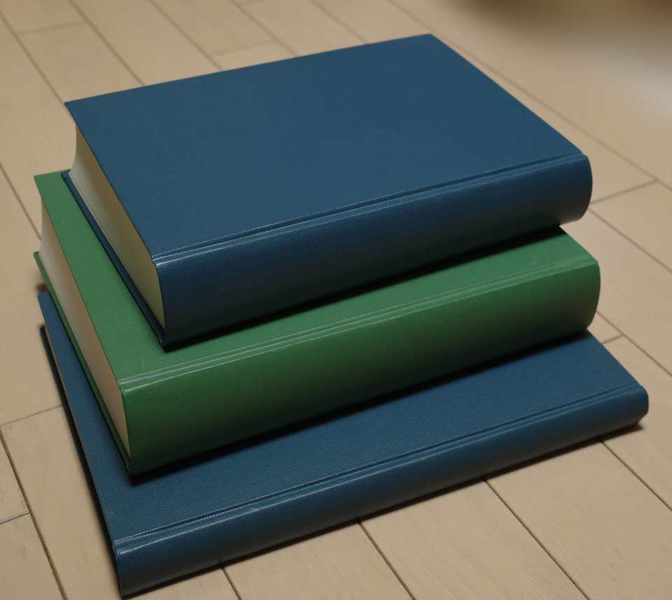 こんな大判の束見本。一番下のは中も画集など用の紙で、どれも重い。これで一冊500円だったので買わないわけには行きませんよね。