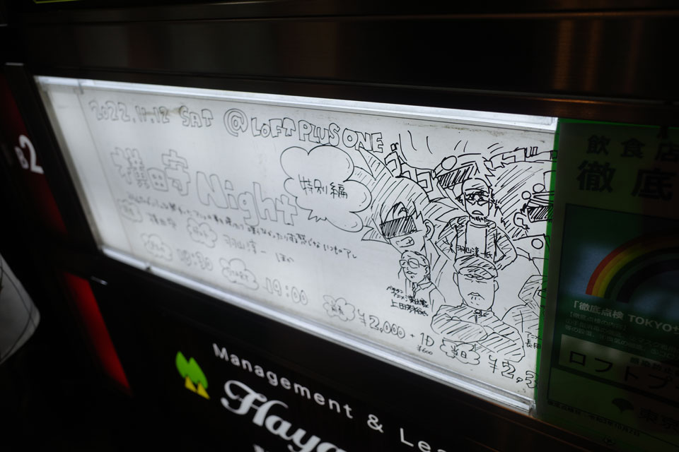 上田さんの話はかなり終わったあたりからだったのかなあ、終演まで1時間ちょっとくらいのところにいったのに当日券払って入場したのにい壇上に呼ばれて何かしら喋ったような気もします。二十数年前の最初のダイの大冒険の打ち上げ二次会がロフトプラスワンになる前のお店だったとか。