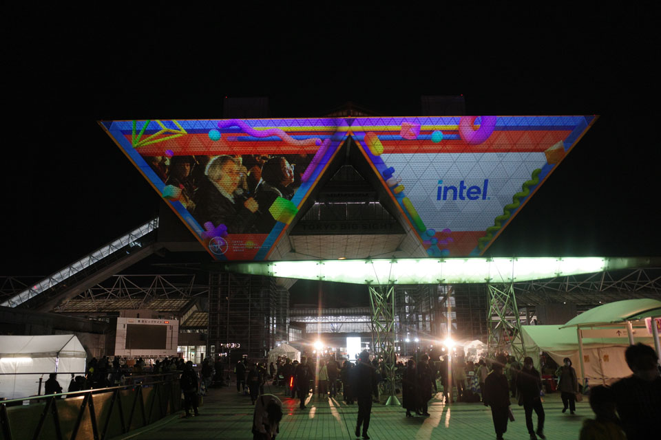 入館前にビッグサイト前広場になにか椅子が並んでるなあと思ったんですが帰る頃には映像投射してなにかコンテストみたいのやってるようでした。2つ並んだ逆三角形似合わせての映像作りはなかなか面白いんじゃないのかなあ。あまりゆっくり見なかったけど。