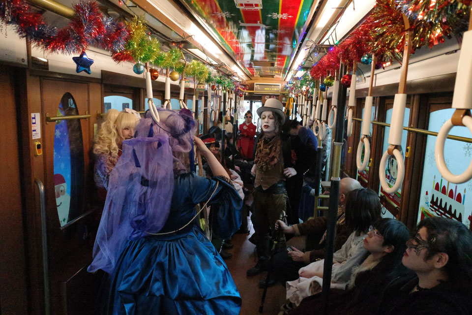 初台のギャラリー喫茶ザロフの忘年会、去年の花やしき貸し切りに続き今年はなんと都電荒川線、現サクラトラム一両貸し切りで三ノ輪早稲田往復二時間の旅。もちろん中では催し物があるわけです。