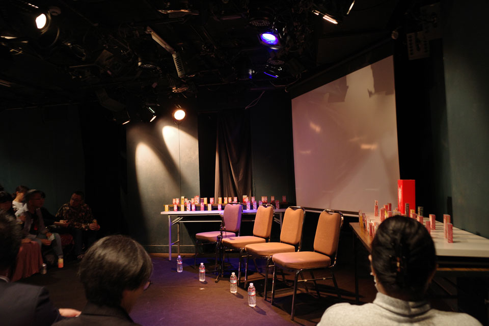 演目名にもなってる京極夏彦、主催の橋沢進一、ずっとゲストでいるらしい俳優・怪奇物収集家の渡辺シブヲの三人が登場、まずは平山夢明到着を待つというイベント。その後は……