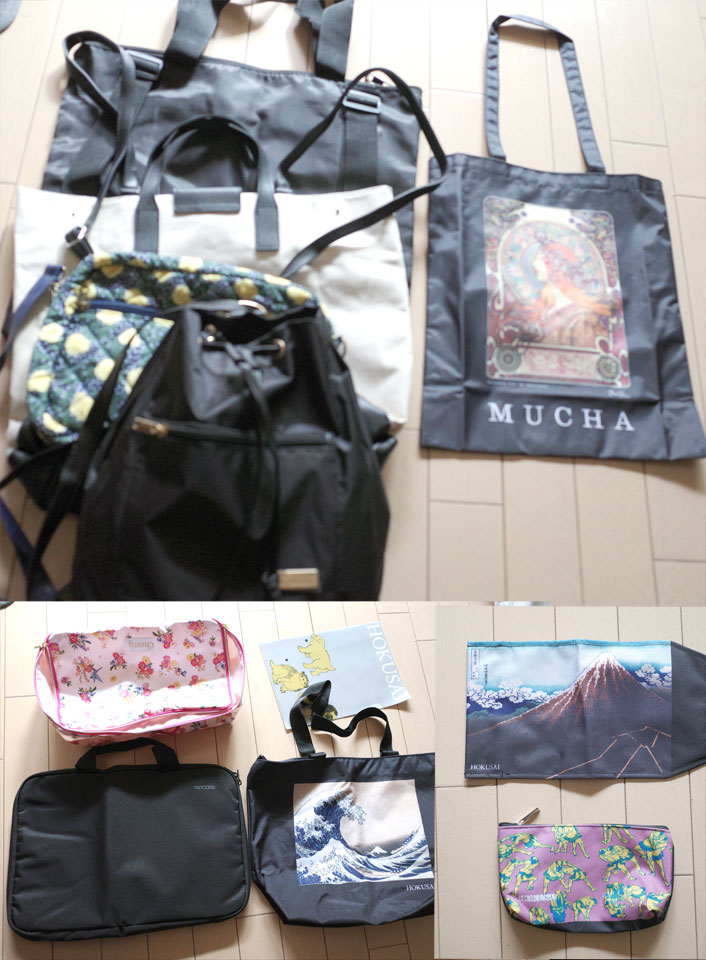 ビールでいい気分になってたので、雑誌付録のバッグたくさん買ってしまいました。