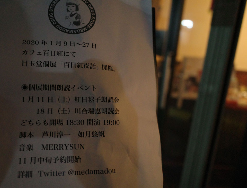 三連休一日目の夜は、いつものカフェ百日紅での朗読劇へ。
