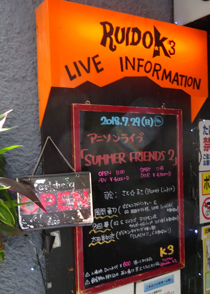 と、いいつつデジモンソングだけの実質デジモンソングライブなのですが、主催はジャギエモンさんという一般の方。前回の出演もファンの方数組+宮崎歩、風間勇刀。今回は同日夜にデジモン公式イベントなので宮崎さんはでられず風間勇刀、多田葵、太田美知彦というデジモンソングでもちょと変わった組み合わせ。少しテイマーズよりなので、小中千昭さんもお誘いしてみました。