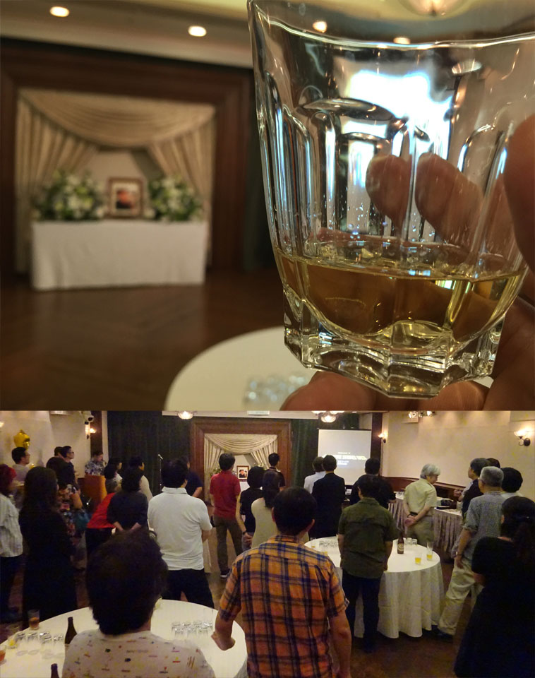 ゲーム業界のみならずワセダミステリクラブ時代からの人とか近年のゴールデン街などで出会った人とか多士済々。献杯は好きだったテキーラで。