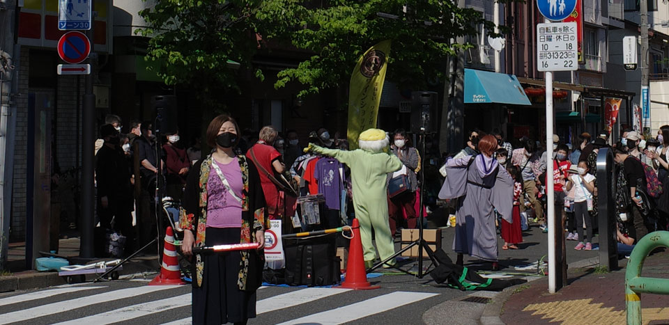 会場の商店街入り口ではすでに妖怪プロジェクトの演奏が。