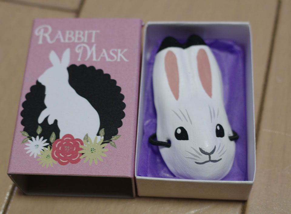 来年うさぎ年なのでウサギのお面ガチャを。どれがあたっても可愛いものでしたよ。
