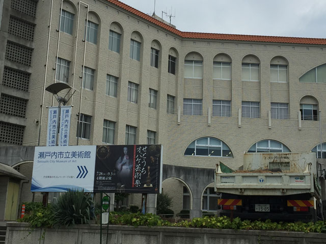 岡山在住で妖怪系文人の化野燐さんがトークする日もあるというので知ったのですが、この美術館が岡山駅からちょと距離ある場所。赤穂線は何年か前に備前長船刀剣博物館に行くとき乗ったなあ、最初はSuica使えなくてまごついたことが。今は途中までとはいえ使えるようになってました。美術館へのバスの乗換え便利案内も公式サイトにあるし、安心して邑久駅からバスで牛窓、美術館のある瀬戸内市役所牛窓庁舎へ。立派な建物。