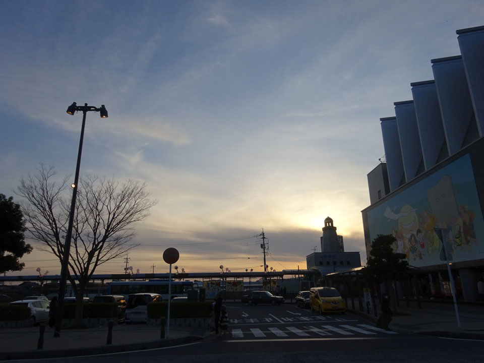 米子市公会堂前からバスで境港に着きしばらくするともう夕暮れ。
