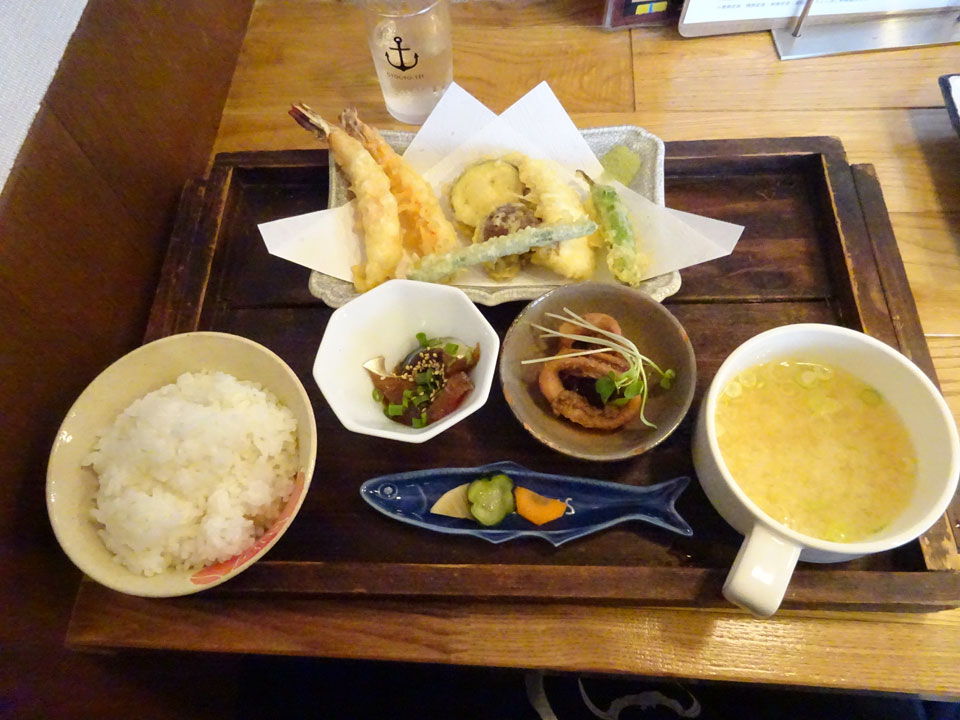 いろいろとお魚が美味しそうな店でしたが朝が海鮮丼だったので、天ぷら定食を。