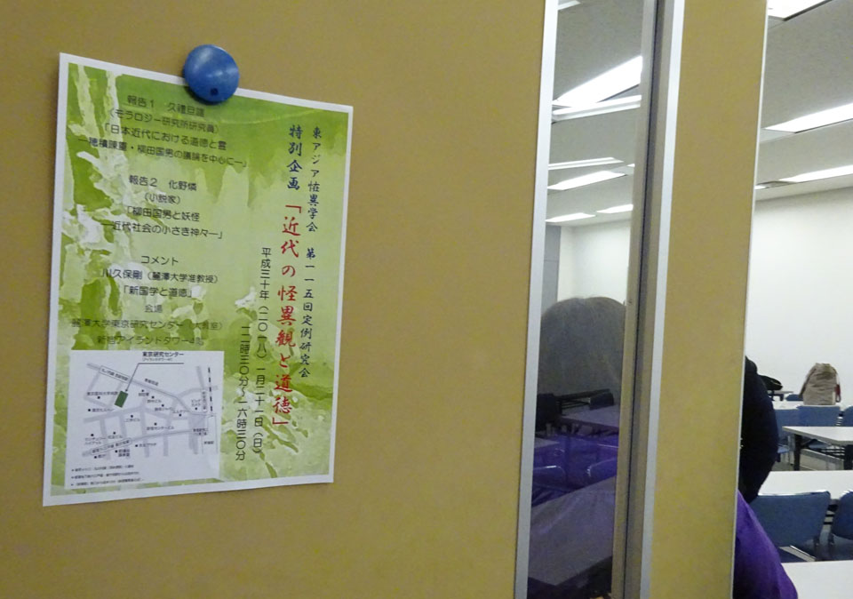 今回の議題は特別企画「近代の怪異観と道徳」ということで、道徳はこの教室を貸してくれた大学の専門なのだそうです。近代の怪異観はもちろん柳田中心で。