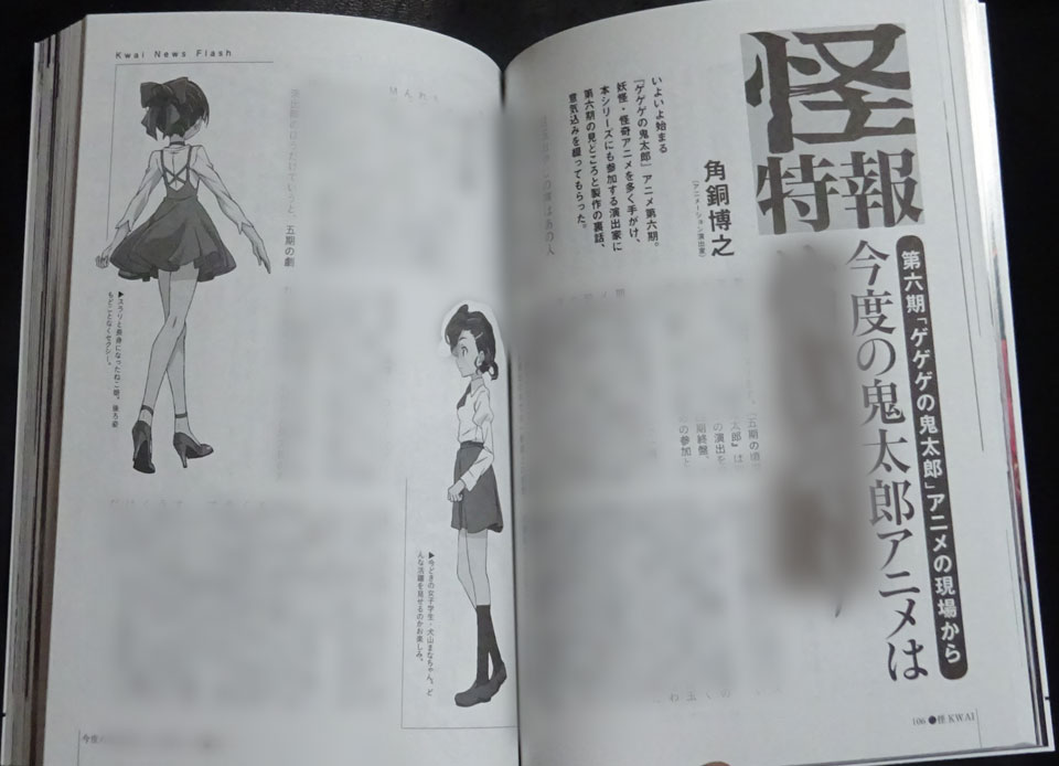 前号に引き続き今回もちろっと書いてます。まあ前号は特集が「アニメと妖怪」だったので少しお手伝いさせていただいたついでに書かせてもらったようなものでしたが、今回は『ゲゲゲの鬼太郎』第六期放映開始なのでなにか書けということで。前回の時点で制作準備はしてたのに公表前だったので何も書けなかった分、今度は書いてもいいんだあ、と思ったらなんと発売は第一話の放映直前。地方によっては配本の日程の関係で放映後かもですと言われたものの、それは放映自体も地方によって少し遅れる地域もあるし。というわけで、放映前までに公表された以外のことは書くことの制限がかなり厳しいものとなりましたが楽しみにしていただけるように書いたつもりであります。実際何をどう書いたかは現物を当たってみていただけるとありがたいです。
